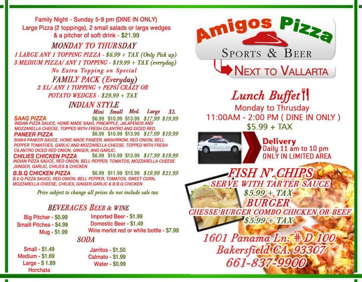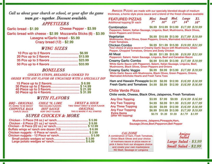 Amigo's Pizza Menu